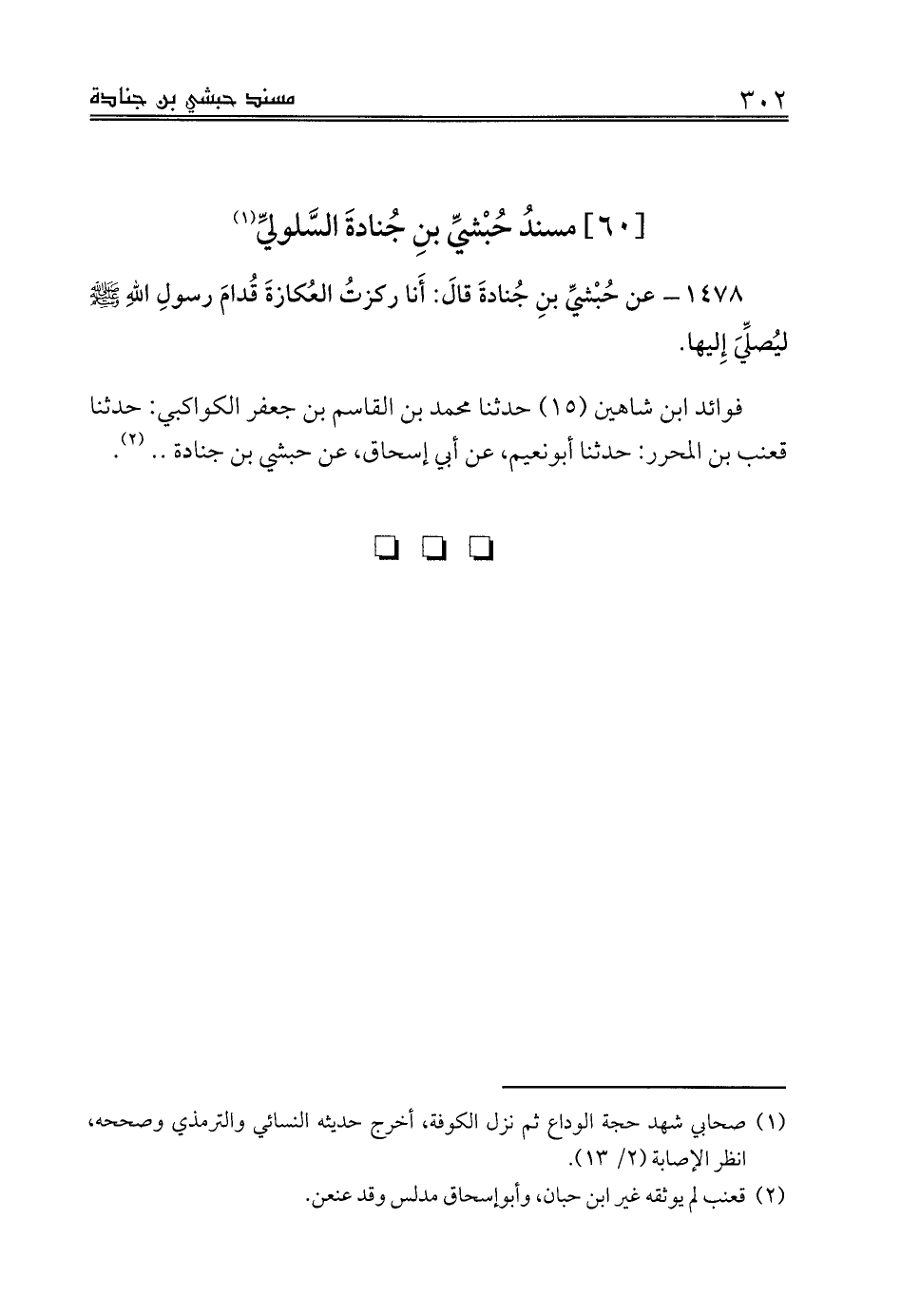 [60] مسندُ حُبْشيِّ بنِ جُنادةَ السَّلوليِّ (¬1)