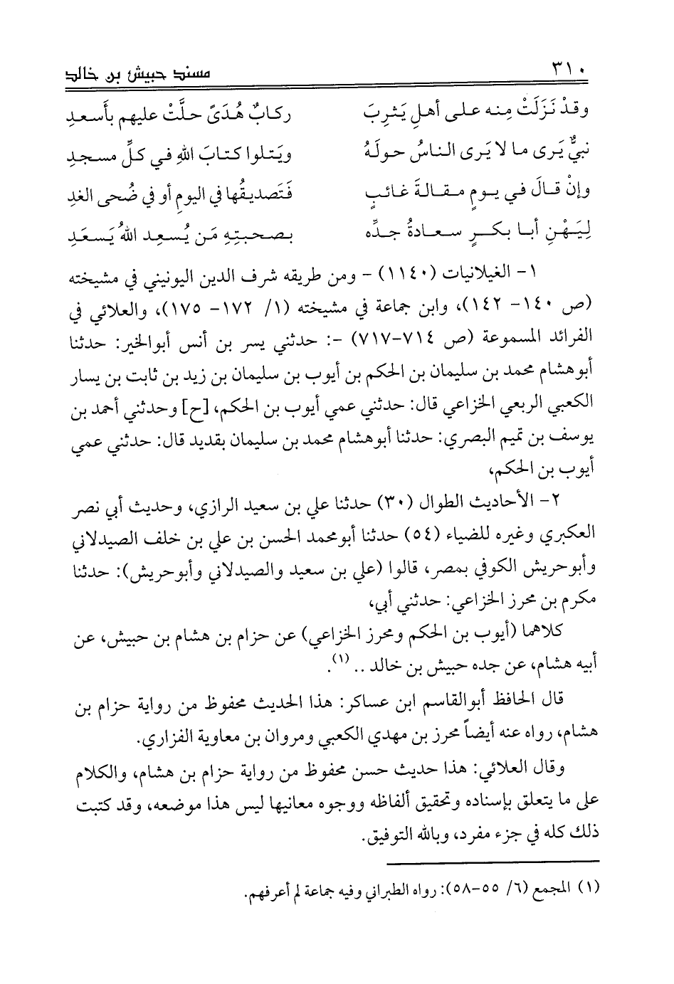 كلاهما (أيوب بن الحكم ومحرز الخزاعي) عن حزام بن هشام بن حبيش، عن أبيه هشام، عن جده حبيش بن خالد .. (¬1).