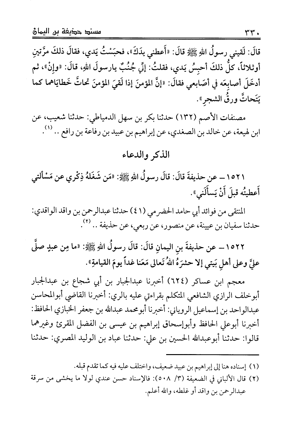المنتقى من فوائد أبي حامد الحضرمي (41) حدثنا عبدالرحمن بن واقد الواقدي: حدثنا سفيان بن عيينة، عن منصور، عن ربعي، عن حذيفة .. (¬2).