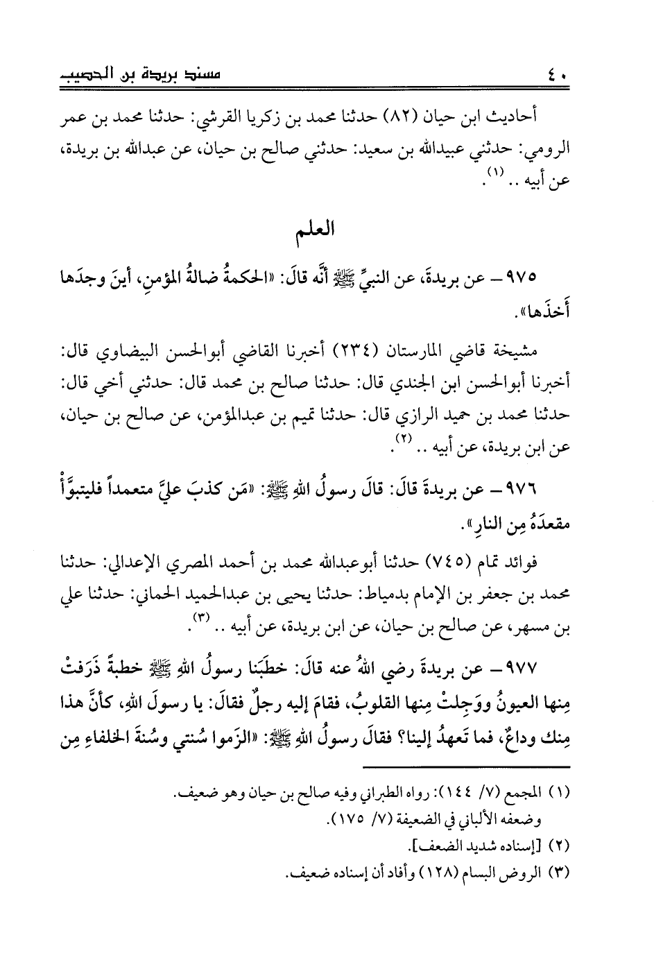 (¬3) الروض البسام (128) وأفاد أن إسناده ضعيف.