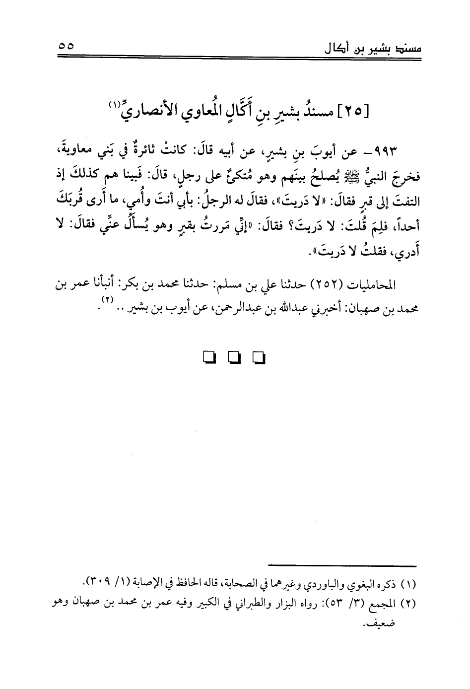 [25] مسندُ بشيرِ بنِ أَكَّالٍ المُعاوي الأنصاريِّ (¬1)