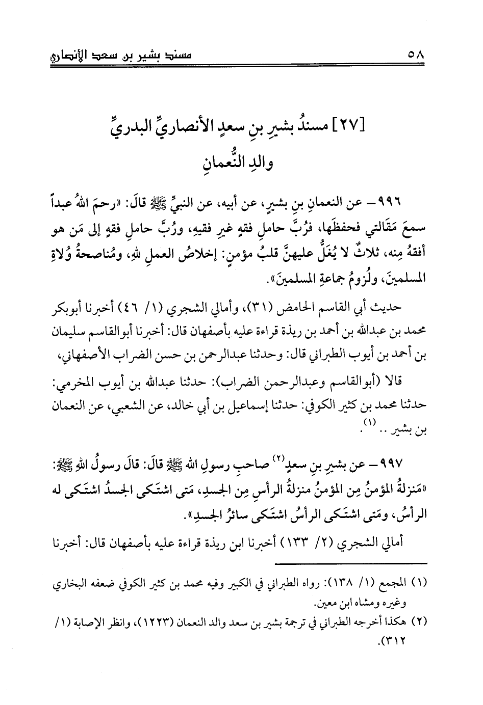 [27] مسندُ بشيرِ بنِ سعدٍ الأنصاريِّ البدريِّ
