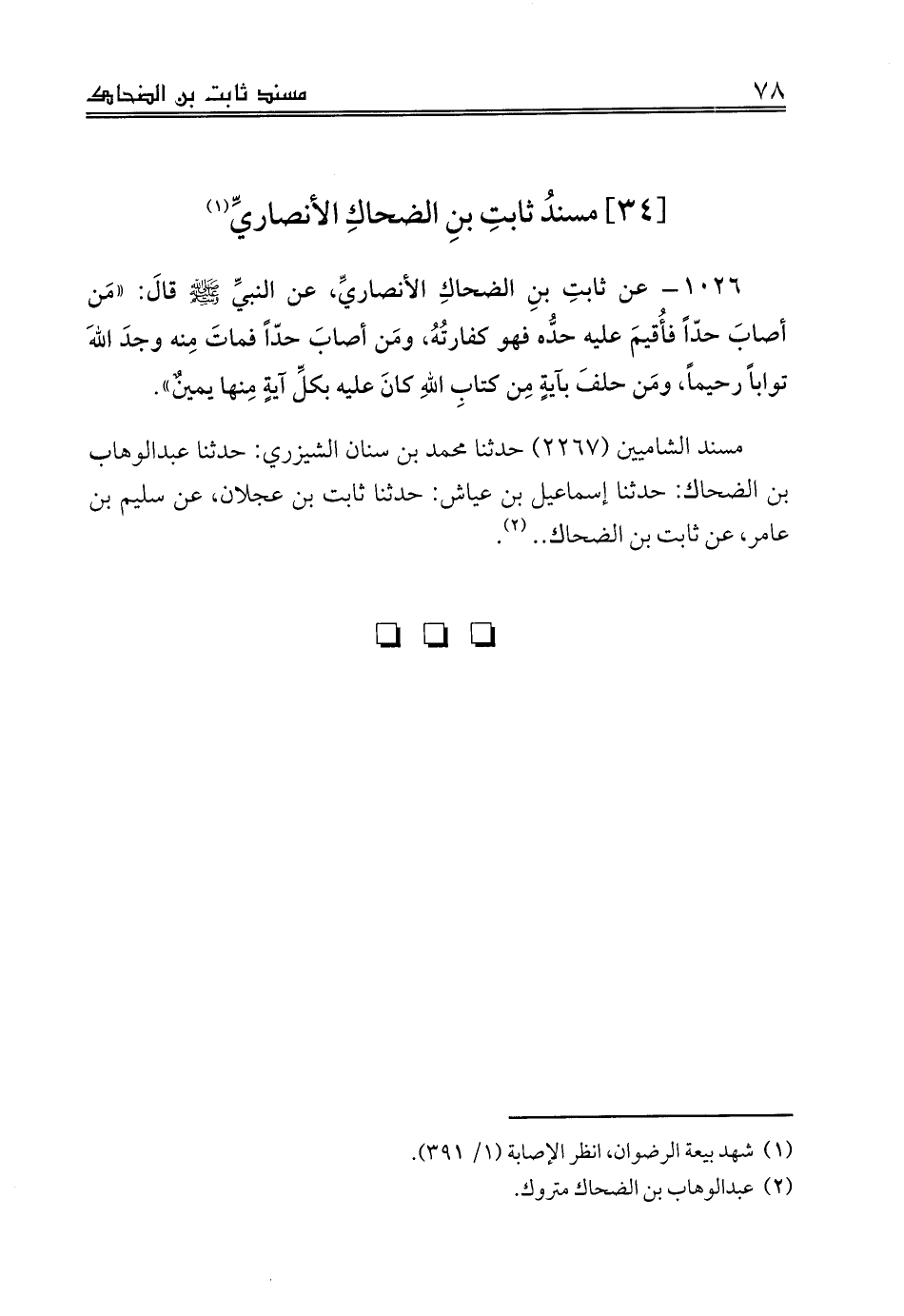 [34] مسندُ ثابتِ بنِ الضحاكِ الأنصاريِّ (¬1)