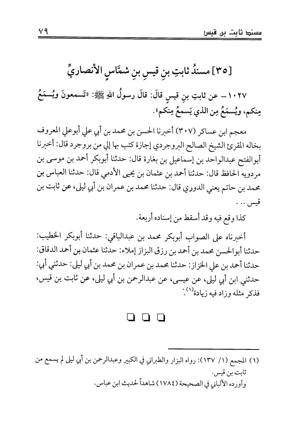 [35] مسندُ ثابتِ بنِ قيس بنِ شمَّاسٍ الأنصاريِّ