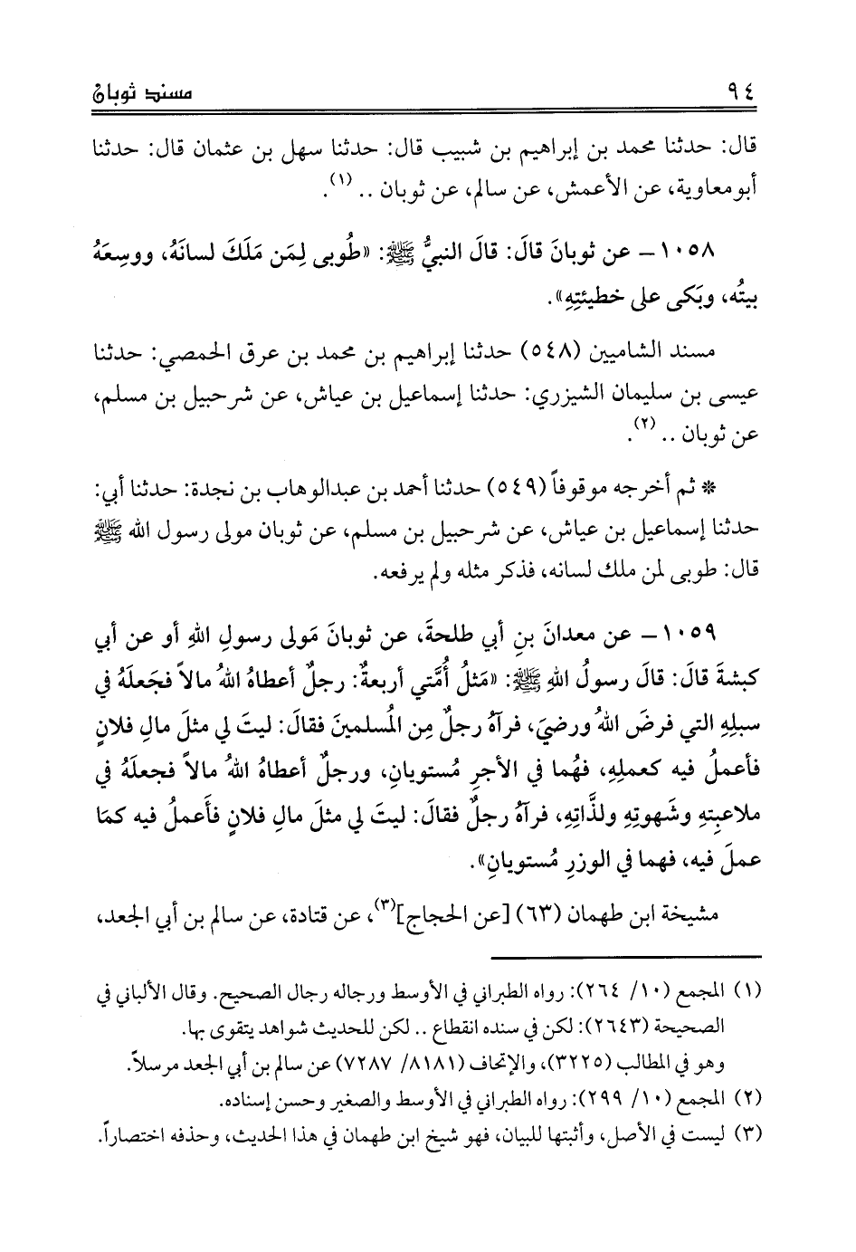 أبومعاوية، عن الأعمش، عن سالم، عن ثوبان .. (¬1).