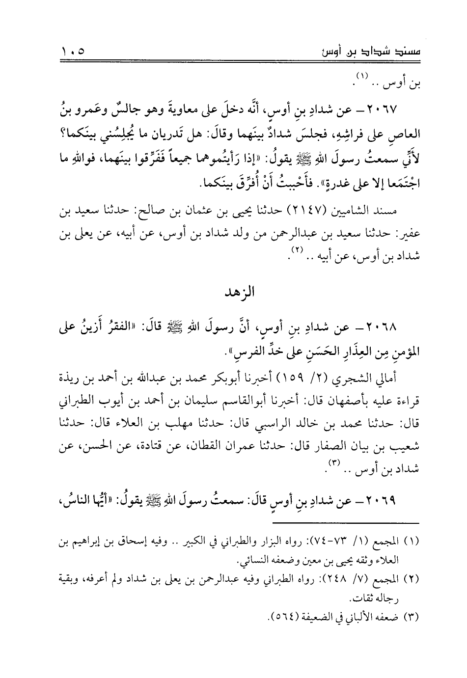 2068 - عن شدادِ بنِ أوسٍ، أنَّ رسولَ اللهِ صلى الله عليه وسلم قالَ: «الفقرُ أَزينُ على المؤمنِ مِن العِذَارِ الحَسَنِ على خدِّ الفرسِ».