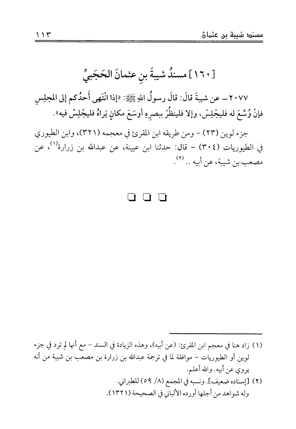 [160] مسندُ شيبةَ بنِ عثمانَ الحَجَبيِّ