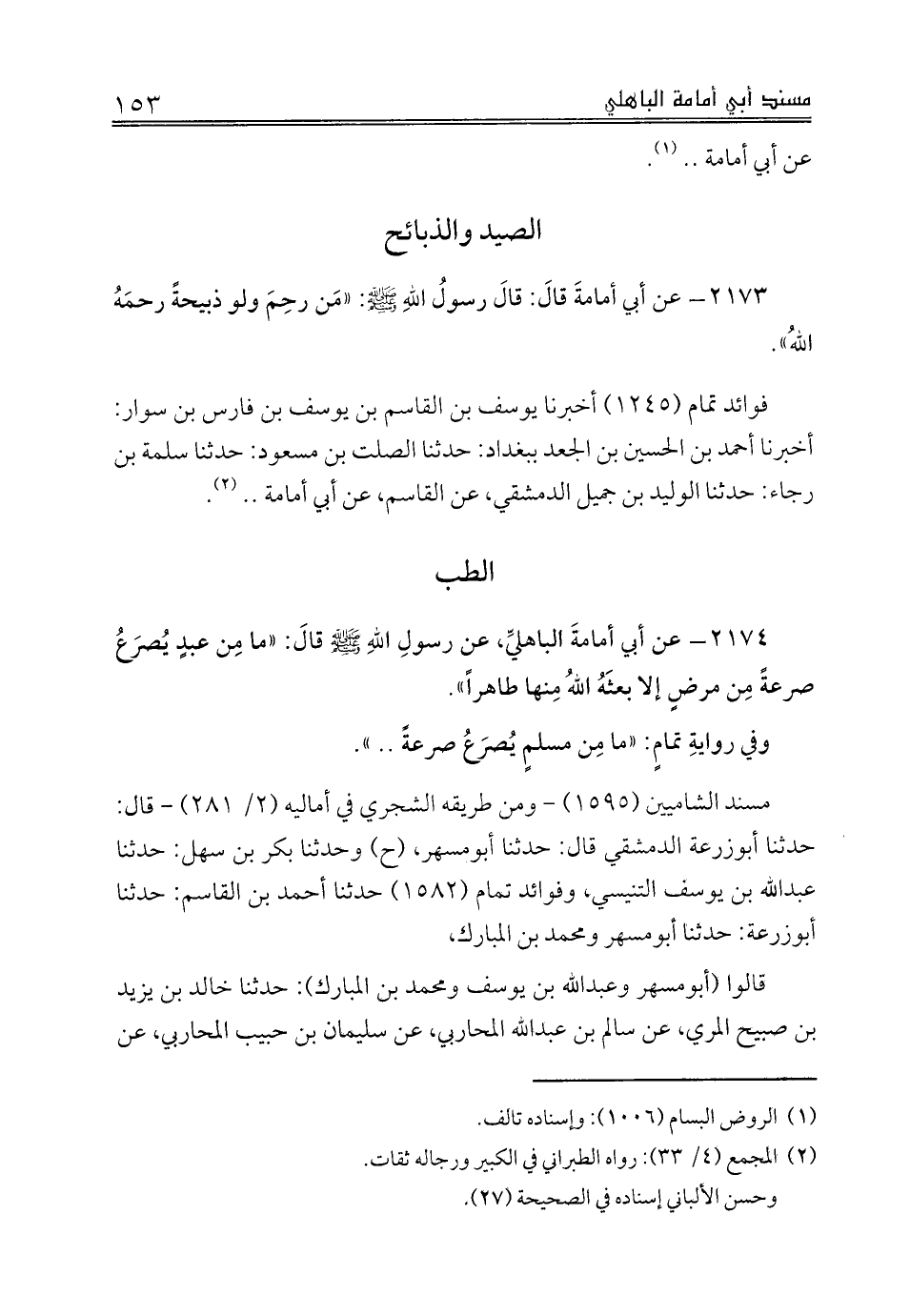 2173 - عن أبي أمامةَ قالَ: قالَ رسولُ اللهِ صلى الله عليه وسلم: «مَن رحِمَ ولو ذبيحةً رحمَهُ اللهُ».
