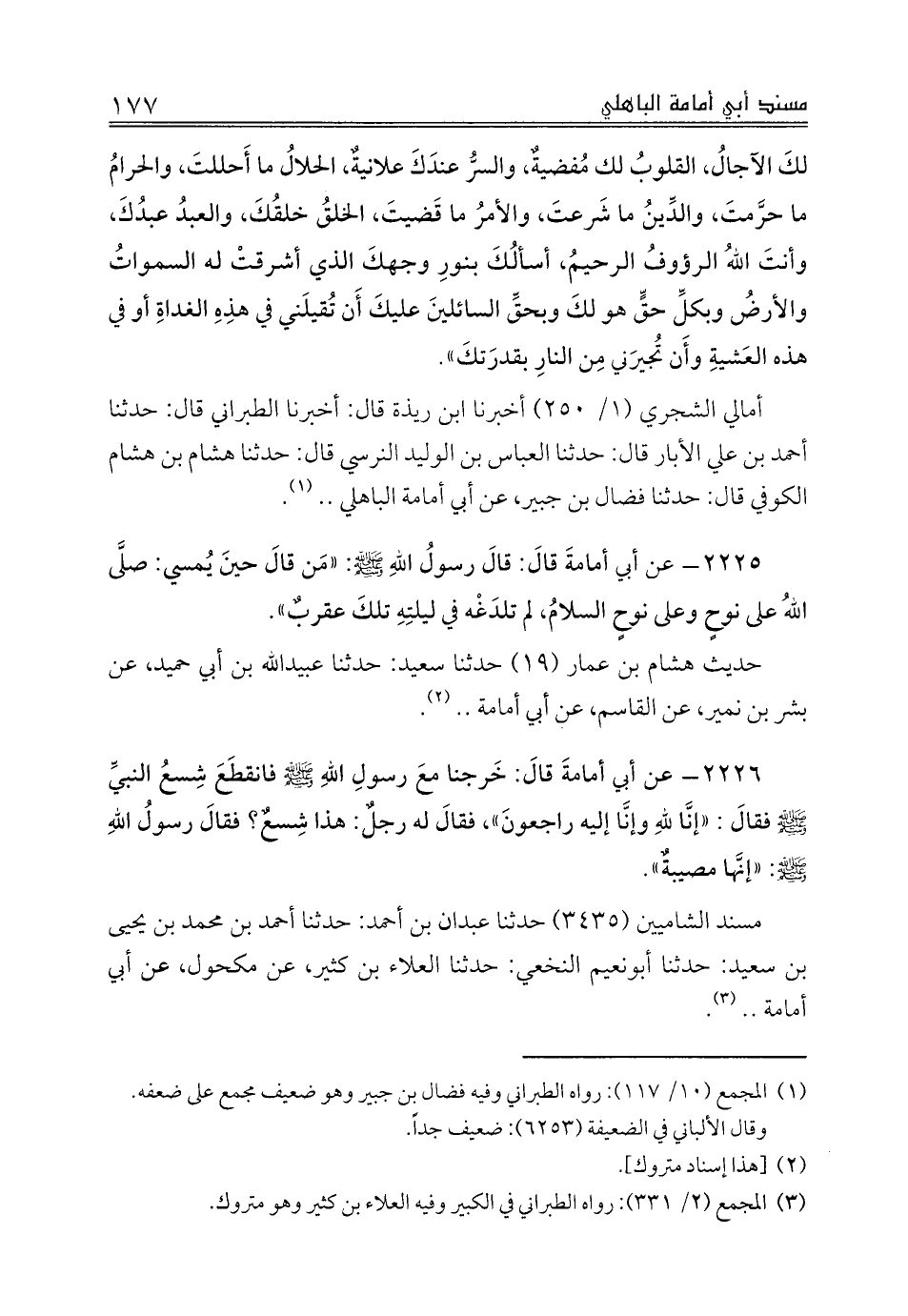 أمالي الشجري (1/ 250) أخبرنا ابن ريذة قال: أخبرنا الطبراني قال: حدثنا أحمد بن علي الأبار قال: حدثنا العباس بن الوليد النرسي قال: حدثنا هشام بن هشام الكوفي قال: حدثنا فضال بن جبير، عن أبي أمامة الباهلي .. (¬1).