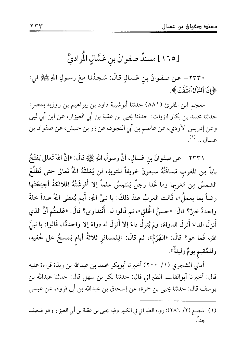 [165] مسندُ صفوانَ بنِ عَسَّالٍ المُراديِّ
