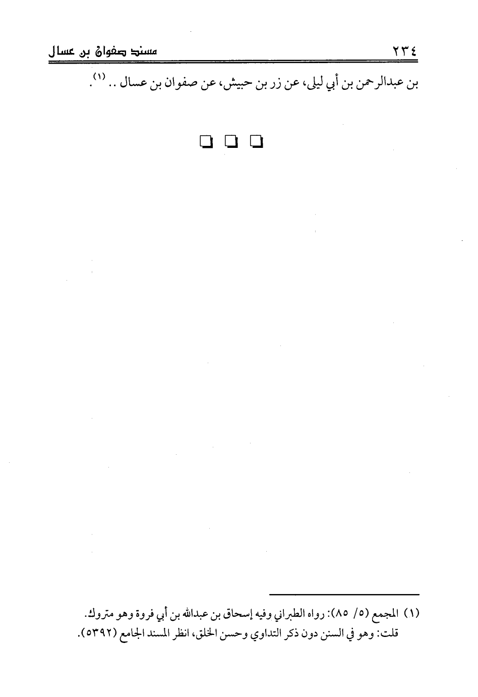 بن عبدالرحمن بن أبي ليلى، عن زر بن حبيش، عن صفوان بن عسال .. (¬1).