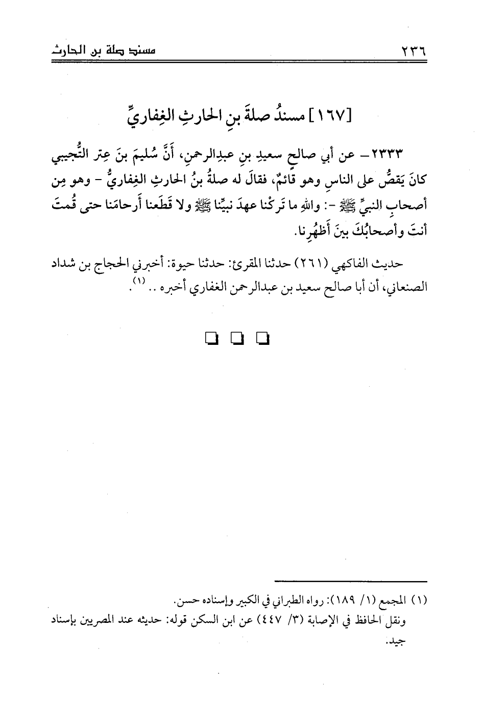 [167] مسندُ صلةَ بنِ الحارثِ الغِفاريِّ