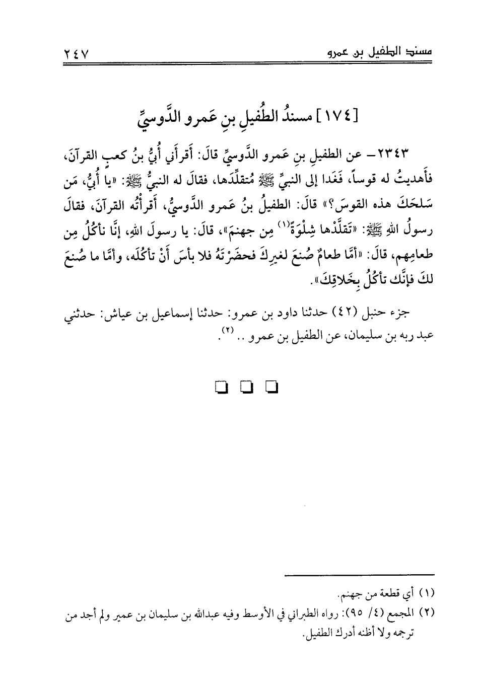 [174] مسندُ الطُفيلِ بنِ عَمرو الدَّوسيِّ