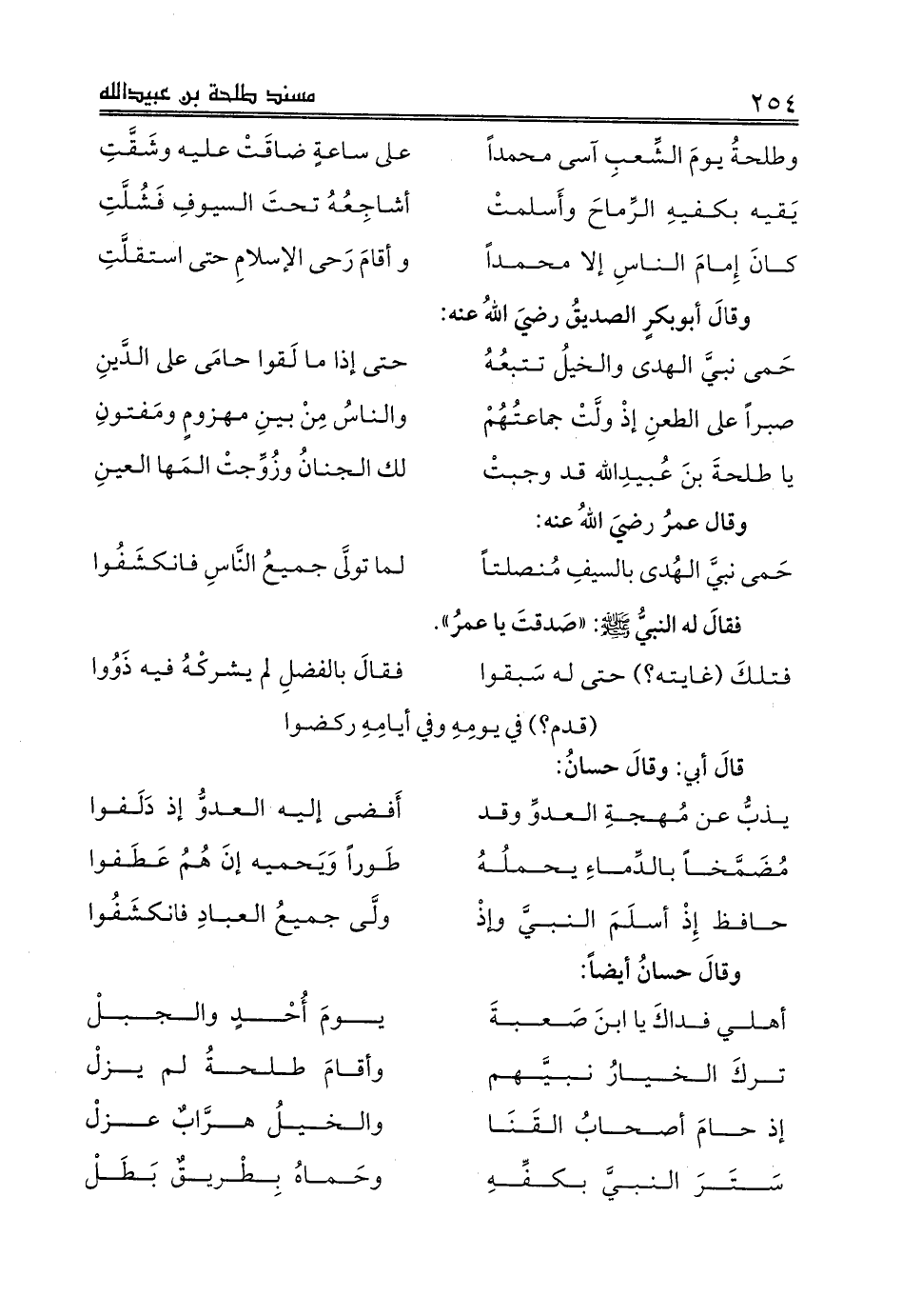 يا طلحةَ بنَ عُبيدِالله قد وجبتْ ... لك الجنانُ وزُوِّجتْ المَها العينِ