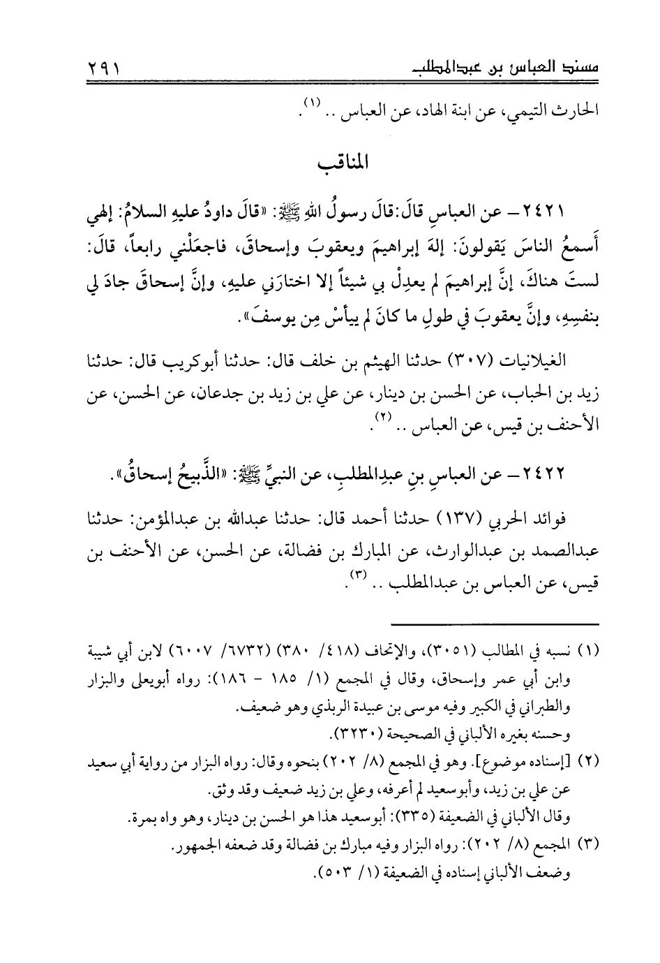 2422 - عن العباسِ بن عبدِالمطلبِ، عن النبيِّ صلى الله عليه وسلم: «الذَّبيحُ إسحاقُ».