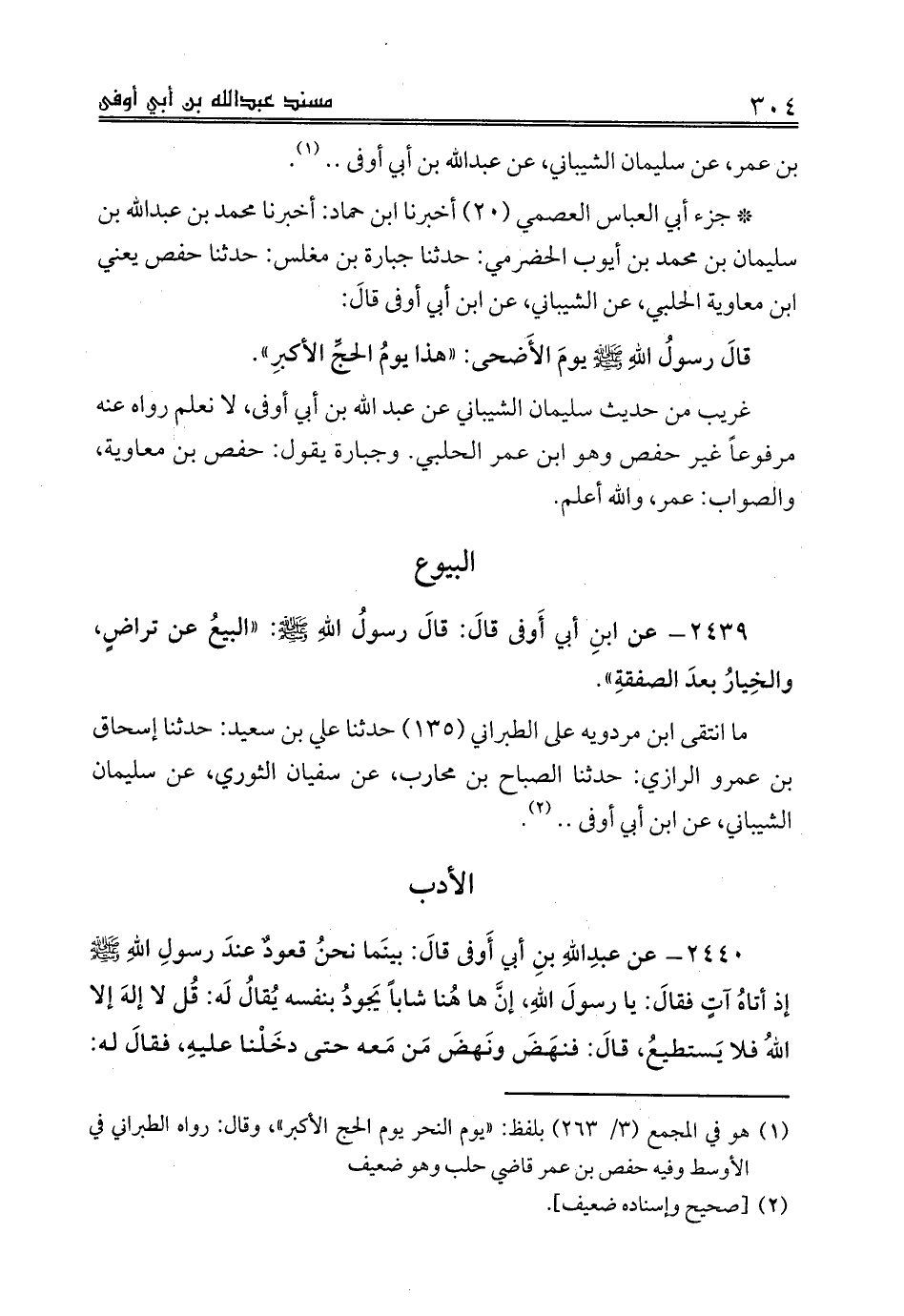 بن عمر، عن سليمان الشيباني، عن عبدالله بن أبي أوفى .. (¬1).