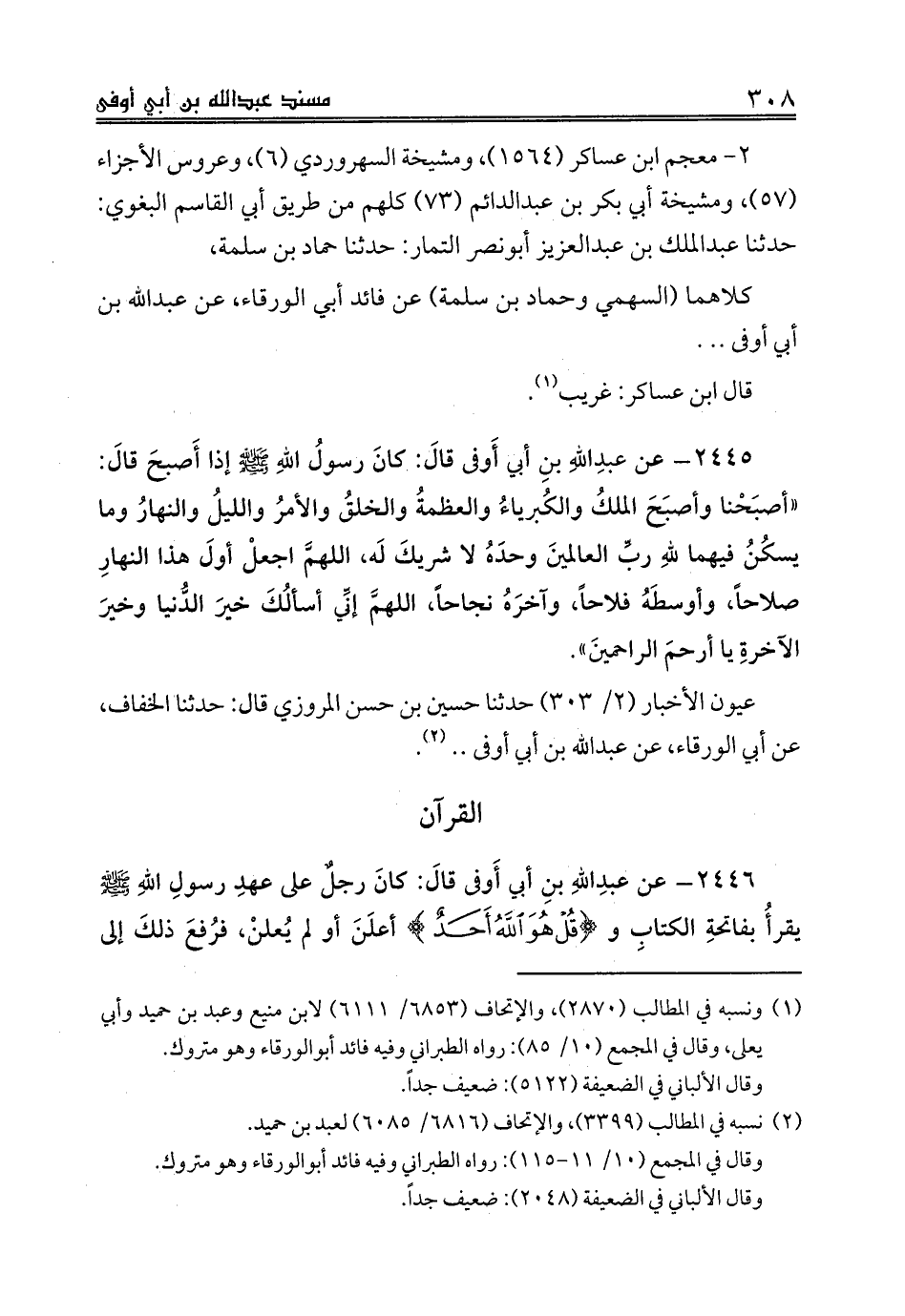 كلاهما (السهمي وحماد بن سلمة) عن فائد أبي الورقاء، عن عبدالله بن أبي أوفى .. .