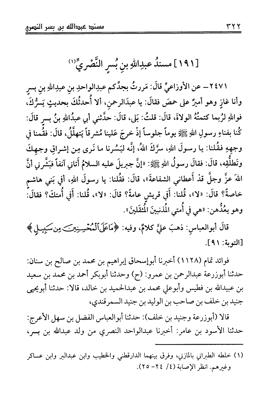 [191] مسندُ عبدِاللهِ بنِ بُسرٍ النَّصْريِّ (¬1)