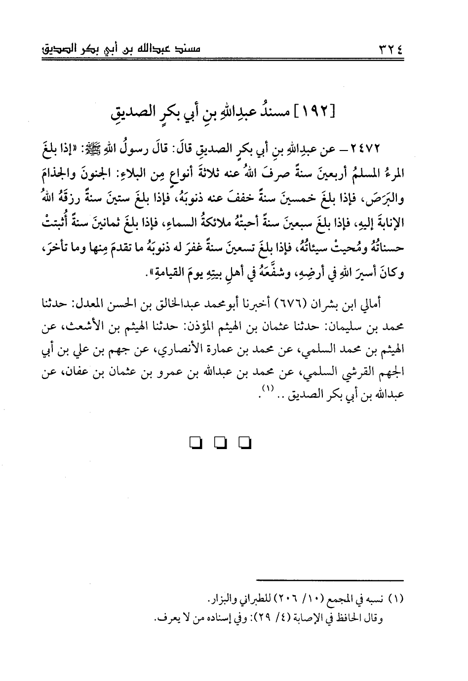 [192] مسندُ عبدِاللهِ بنِ أبي بكرٍ الصديقِ