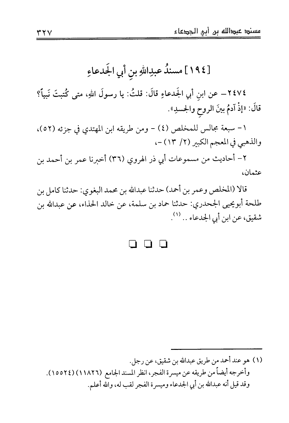 [194] مسندُ عبدِاللهِ بنِ أبي الجَدعاءِ