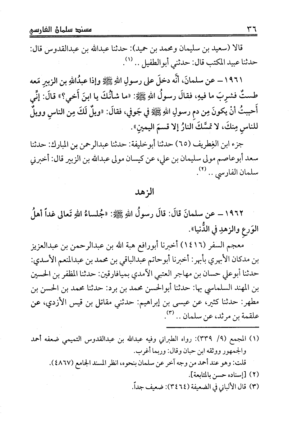 جزء ابن الغِطريف (65) حدثنا أبوخليفة: حدثنا عبدالرحمن بن المبارك: حدثنا سعد أبوعاصم مولى سليمان بن علي، عن كيسان مولى عبدالله بن الزبير قال: أخبرني سلمان الفارسي .. (¬2).