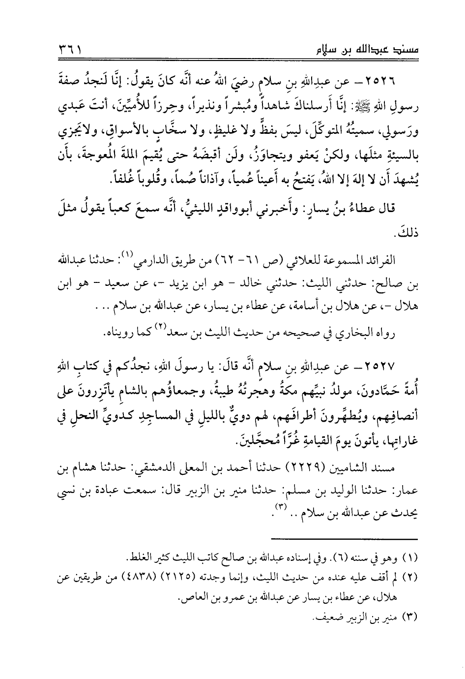 الفرائد المسموعة للعلائي (ص 61 - 62) من طريق الدارمي (¬1): حدثنا عبدالله بن صالح: حدثني الليث: حدثني خالد - هو ابن يزيد -، عن سعيد - هو ابن هلال -، عن هلال بن أسامة، عن عطاء بن يسار، عن عبدالله بن سلام .. .