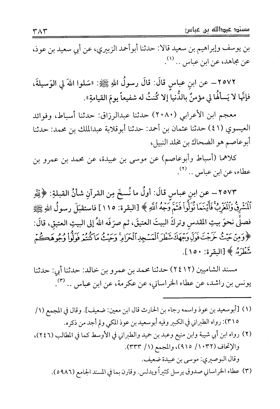 كلاهما (أسباط وأبوعاصم) عن موسى بن عبيدة، عن محمد بن عمرو بن عطاء، عن ابن عباس .. (¬2).