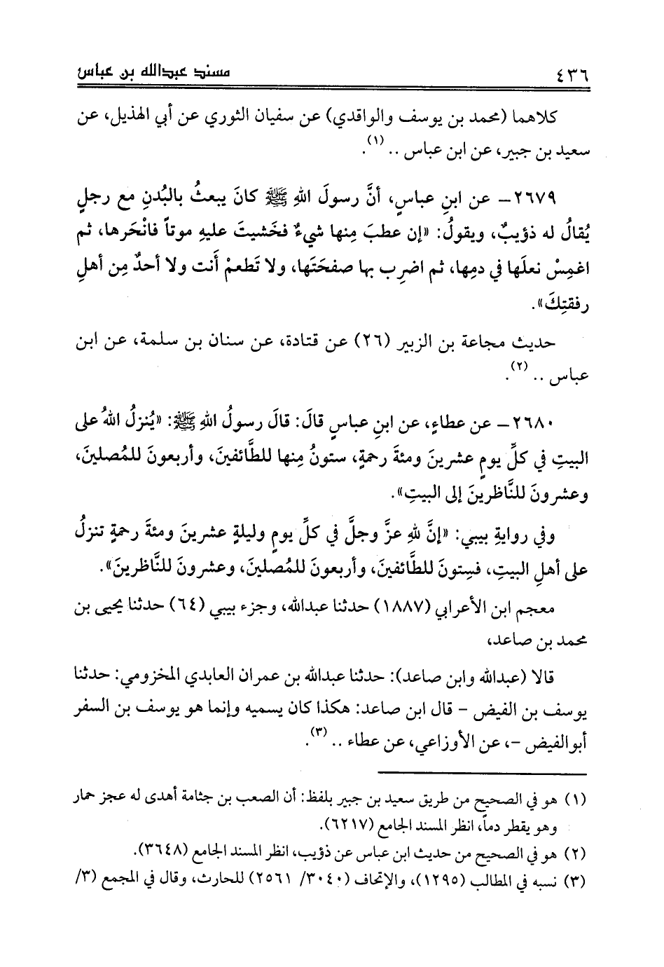 (¬2) هو في الصحيح من حديث ابن عباس عن ذؤيب، انظر المسند الجامع (3648).