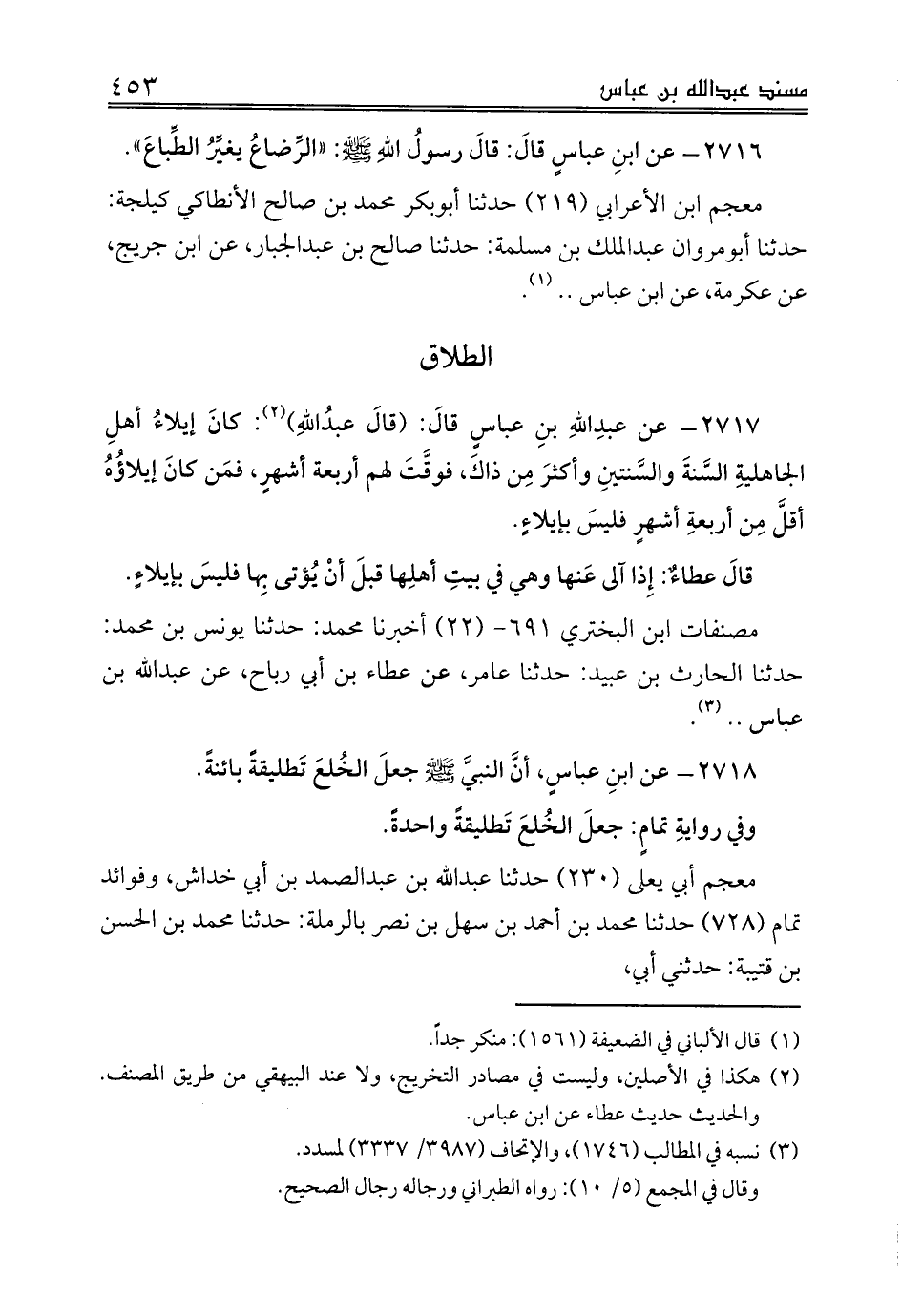 2717 - عن عبدِاللهِ بنِ عباسٍ قالَ: (قالَ عبدُاللهِ) (¬2): كانَ إيلاءُ أهلِ الجاهليةِ السَّنةَ والسَّنتينِ وأكثرَ مِن ذاكَ، فوقَّتَ لهم أربعة أشهرٍ، فمَن كانَ إيلاؤُهُ أقلَّ مِن أربعةِ أشهرٍ فليسَ بإيلاءٍ.