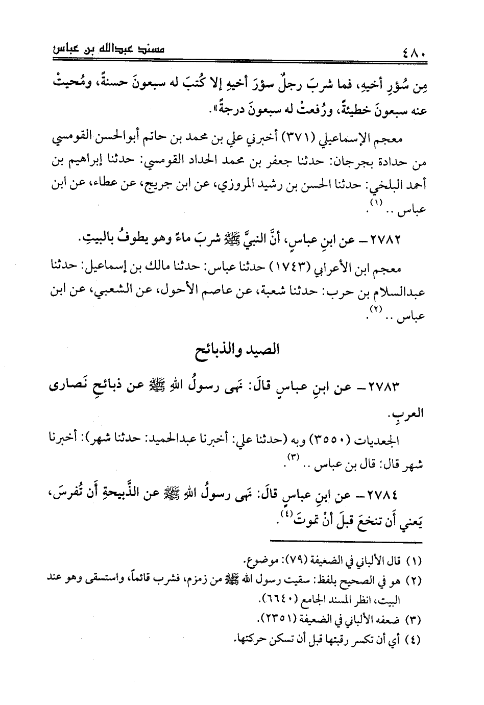 2784 - عن ابنِ عباسٍ قالَ: نَهى رسولُ اللهِ صلى الله عليه وسلم عن الذَّبيحةِ أَن تُفرسَ، يَعني أَن تنخعَ قبلَ أنْ تموتَ (¬4).