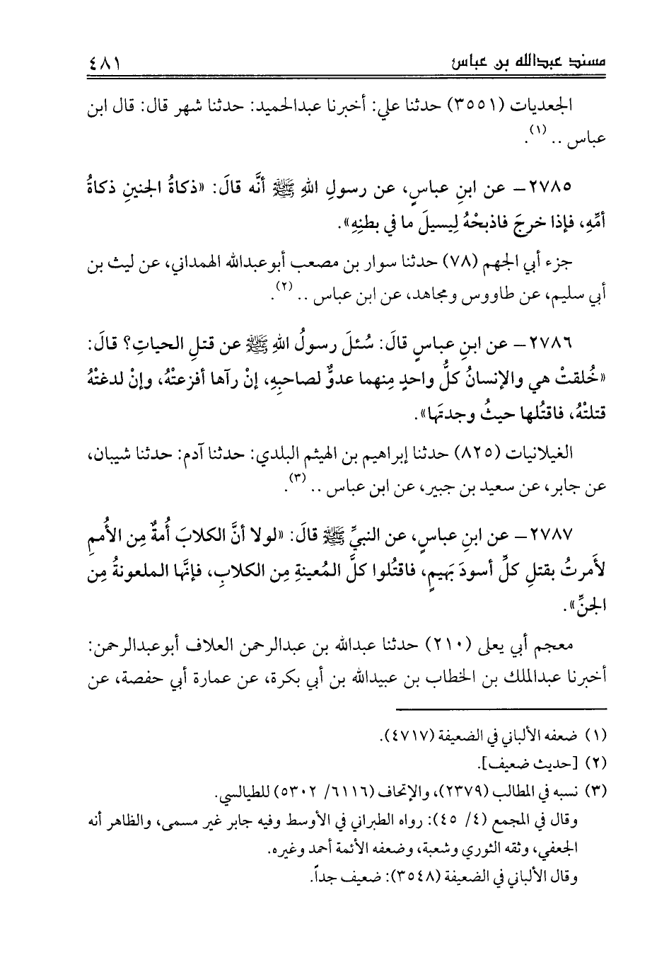 الجعديات (3551) حدثنا علي: أخبرنا عبدالحميد: حدثنا شهر قال: قال ابن عباس .. (¬1).