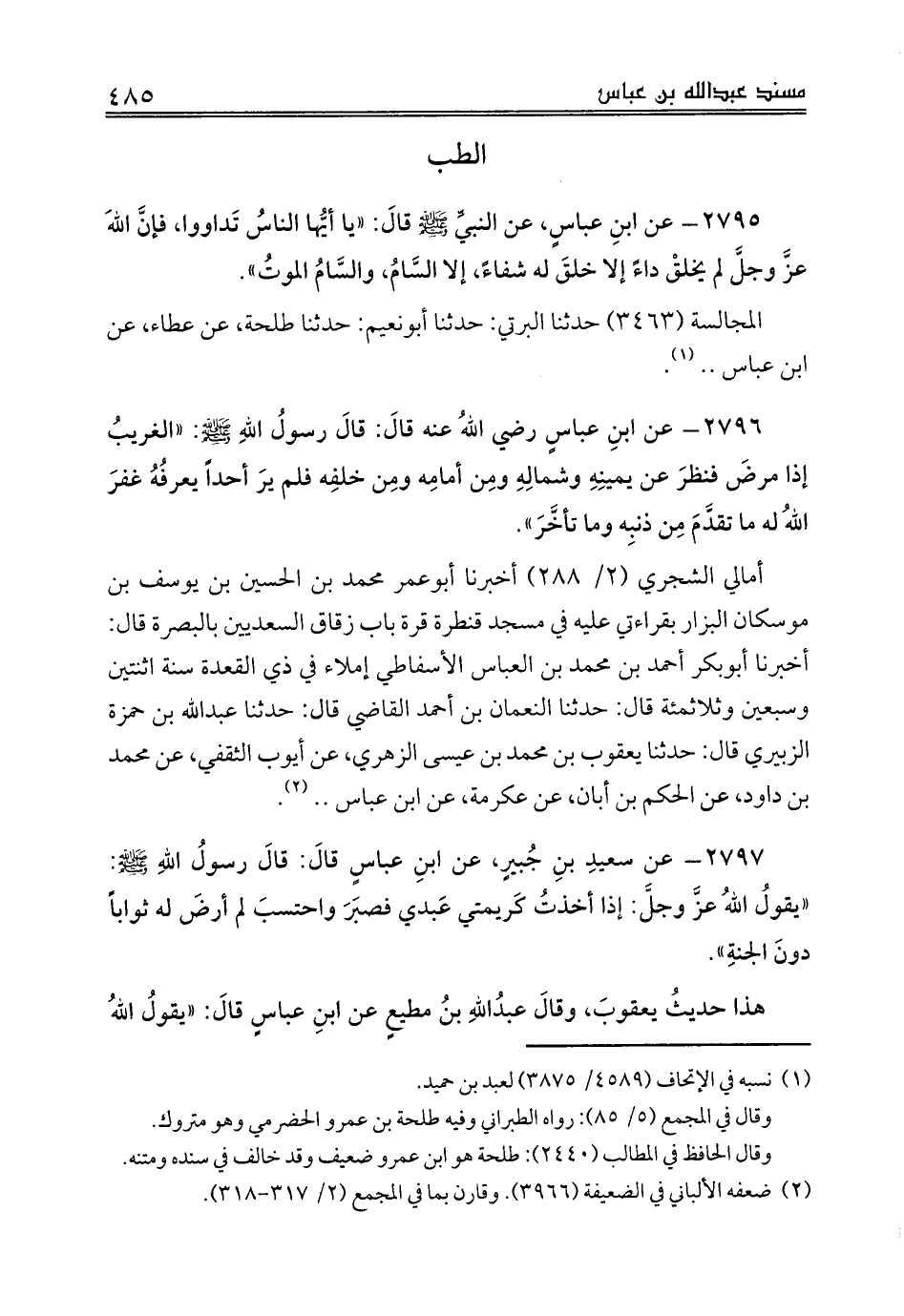 المجالسة (3463) حدثنا البرتي: حدثنا أبونعيم: حدثنا طلحة، عن عطاء، عن ابن عباس .. (¬1).