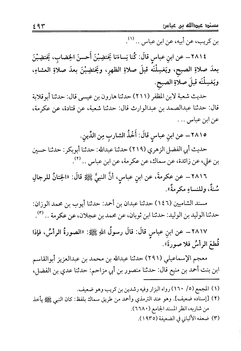 2817 - عن ابنِ عباسٍ قالَ: قالَ رسولُ اللهِ صلى الله عليه وسلم: «الصورةُ الرأسُ، فإذا قُطعَ الرأسُ فلا صورةَ».