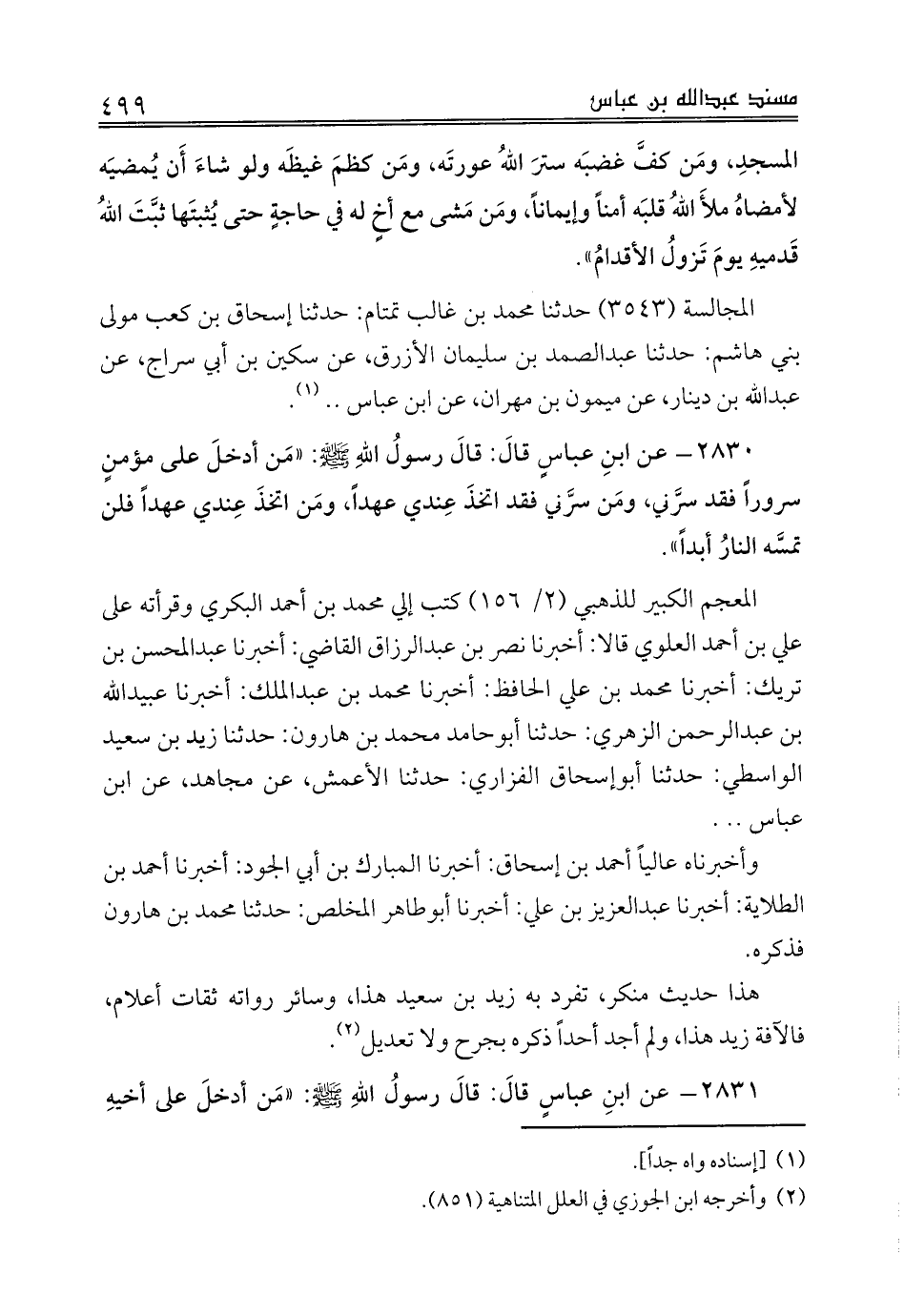 المعجم الكبير للذهبي (2/ 156) كتب إلي محمد بن أحمد البكري وقرأته على علي بن أحمد العلوي قالا: أخبرنا نصر بن عبدالرزاق القاضي: أخبرنا عبدالمحسن بن تريك: أخبرنا محمد بن علي الحافظ: أخبرنا محمد بن عبدالملك: أخبرنا عبيدالله بن عبدالرحمن الزهري: حدثنا أبوحامد محمد بن هارون: حدثنا زيد بن سعيد الواسطي: حدثنا أبوإسحاق الفزاري: حدثنا الأعمش، عن مجاهد، عن ابن عباس .. .