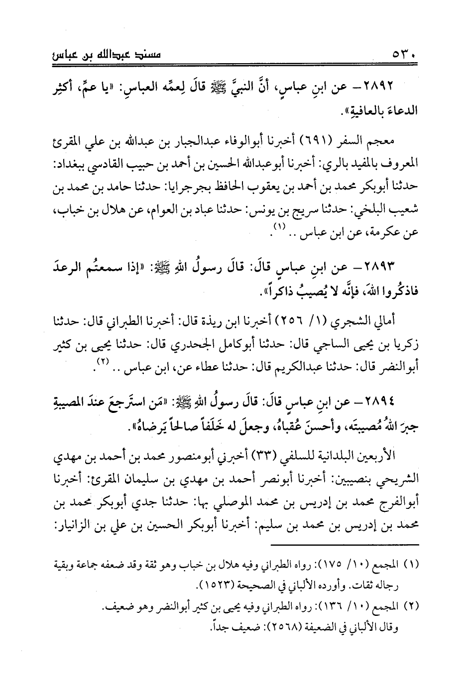 2892 - عن ابنِ عباسٍ، أنَّ النبيَّ صلى الله عليه وسلم قالَ لِعمِّه العباسِ: «يا عمِّ، أكثِر الدعاءَ بالعافيةِ».