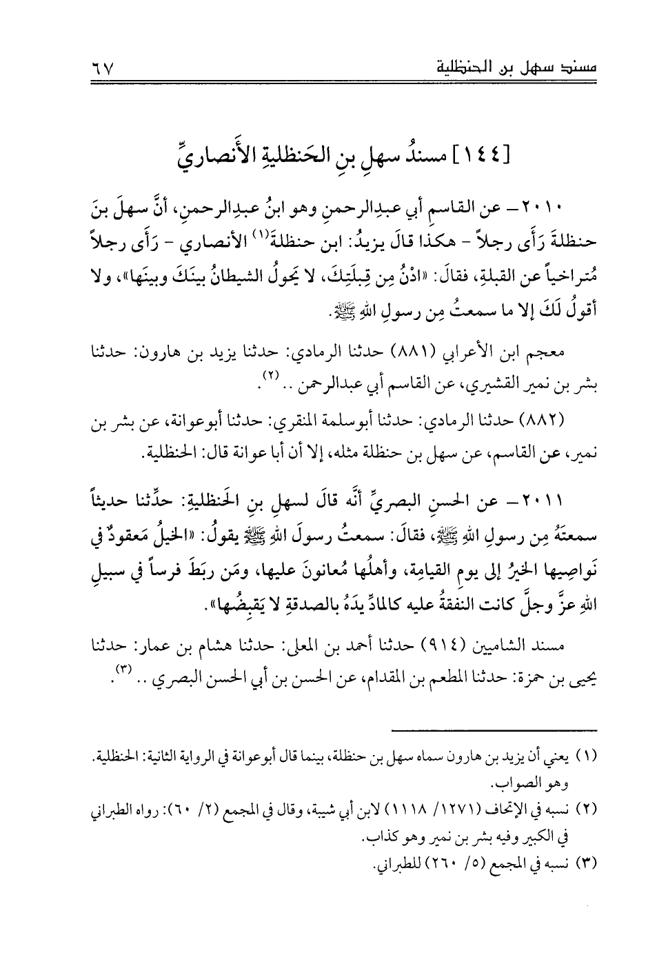 [144] مسندُ سهلِ بنِ الحَنظليةِ الأَنصاريِّ