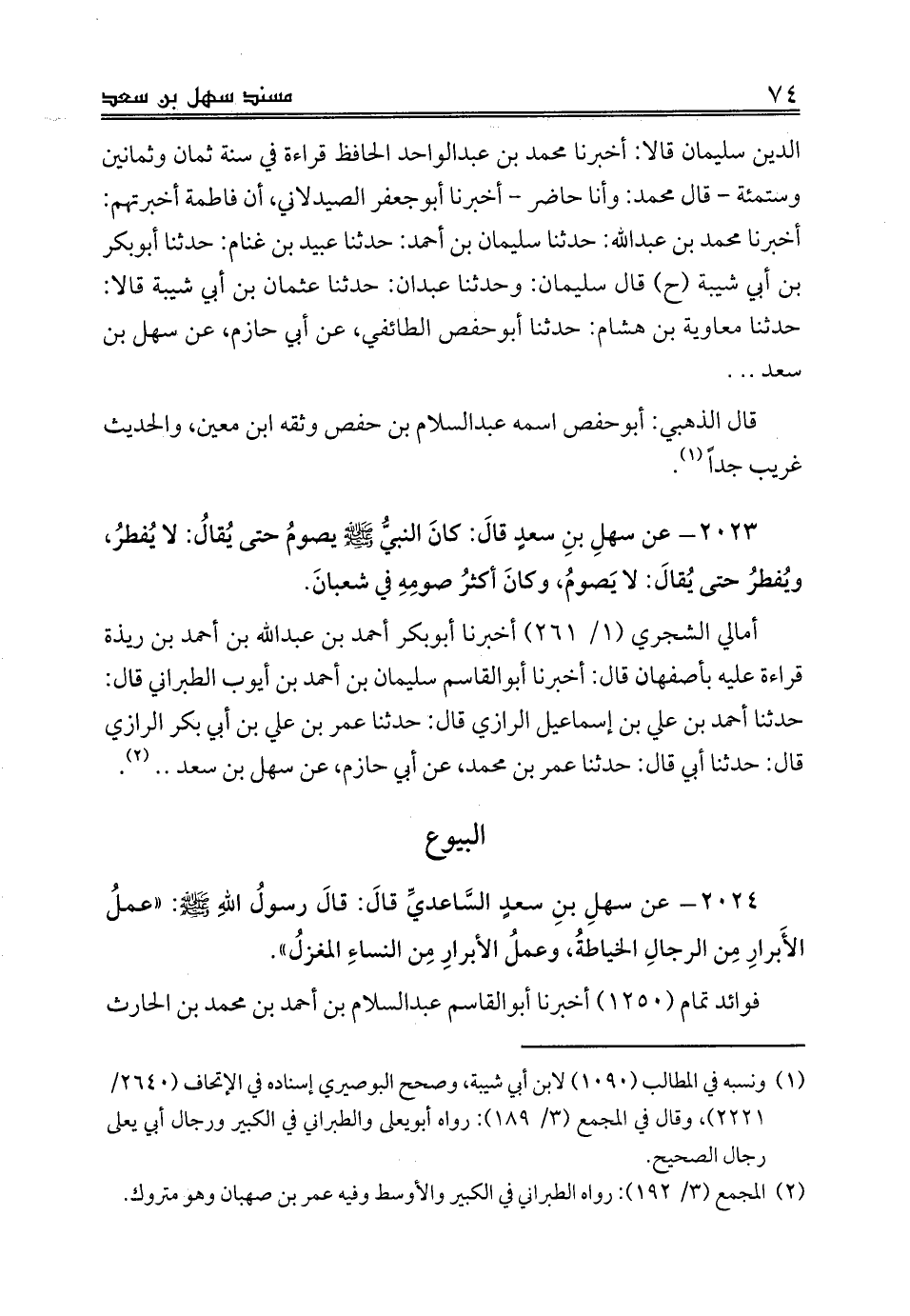 الدين سليمان قالا: أخبرنا محمد بن عبدالواحد الحافظ قراءة في سنة ثمان وثمانين وستمئة - قال محمد: وأنا حاضر - أخبرنا أبوجعفر الصيدلاني، أن فاطمة أخبرتهم: أخبرنا محمد بن عبدالله: حدثنا سليمان بن أحمد: حدثنا عبيد بن غنام: حدثنا أبوبكر بن أبي شيبة (ح) قال سليمان: وحدثنا عبدان: حدثنا عثمان بن أبي شيبة قالا: حدثنا معاوية بن هشام: حدثنا أبوحفص الطائفي، عن أبي حازم، عن سهل بن سعد .. .