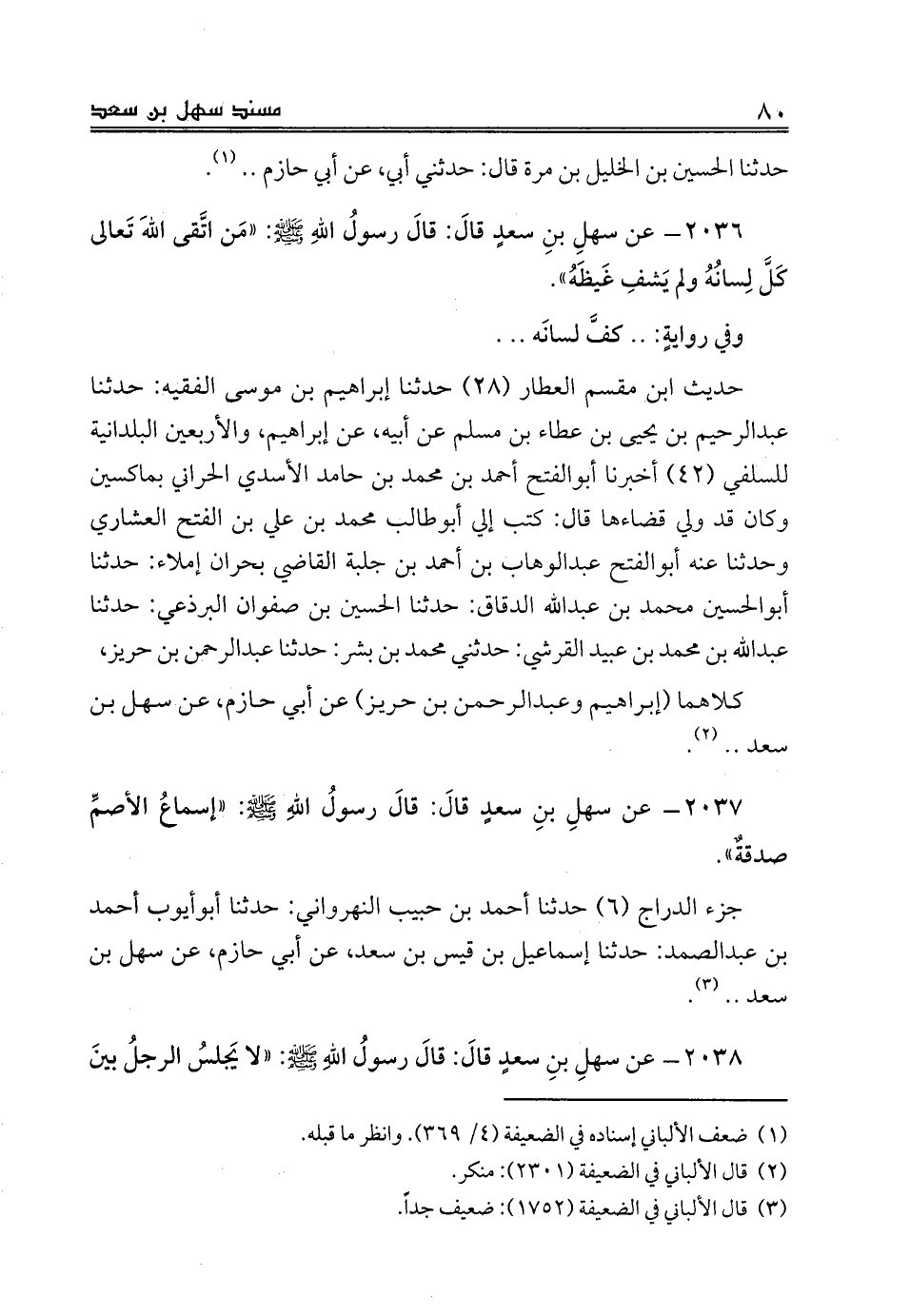 2037 - عن سهلِ بنِ سعدٍ قالَ: قالَ رسولُ اللهِ صلى الله عليه وسلم: «إسماعُ الأصمِّ صدقةٌ».