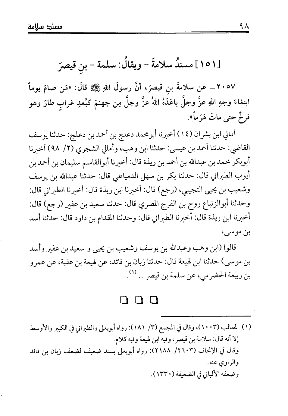[151] مسندُ سلامةَ - ويقالُ: سلمةُ - بنِ قيصرَ