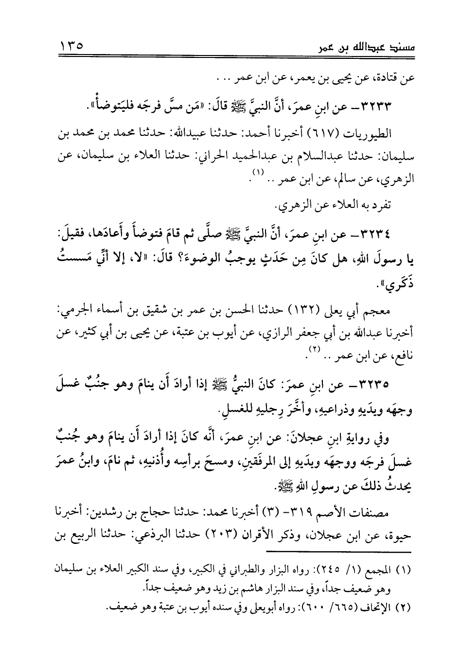 الطيوريات (617) أخبرنا أحمد: حدثنا عبيدالله: حدثنا محمد بن محمد بن سليمان: حدثنا عبدالسلام بن عبدالحميد الحراني: حدثنا العلاء بن سليمان، عن الزهري، عن سالم، عن ابن عمر .. (¬1).