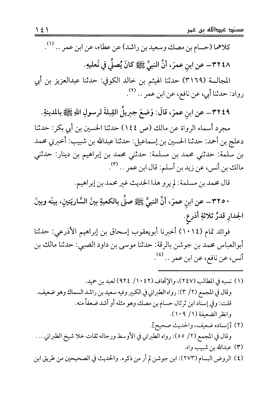 مجرد أسماء الرواة عن مالك (ص 144) حدثنا الحسين بن أبي بكر: حدثنا دعلج بن أحمد: حدثنا الحسين بن إسماعيل: حدثنا عبدالله بن شبيب: أخبرني محمد بن سلمة: حدثني محمد بن مسلمة: حدثني محمد بن إبراهيم بن دينار: حدثني مالك بن أنس، عن زيد بن أسلم: قال ابن عمر .. (¬3).