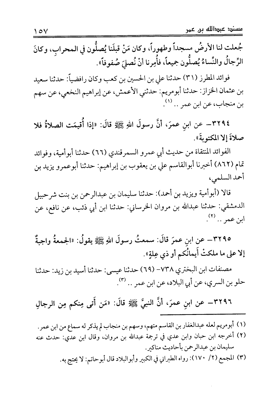 فوائد المطرز (31) حدثنا علي بن الحسين بن كعب وكان رافضياً: حدثنا سعيد بن عثمان الخزاز: حدثنا أبومريم: حدثني الأعمش، عن إبراهيم النخعي، عن سهم بن منجاب، عن ابن عمر .. (¬1).