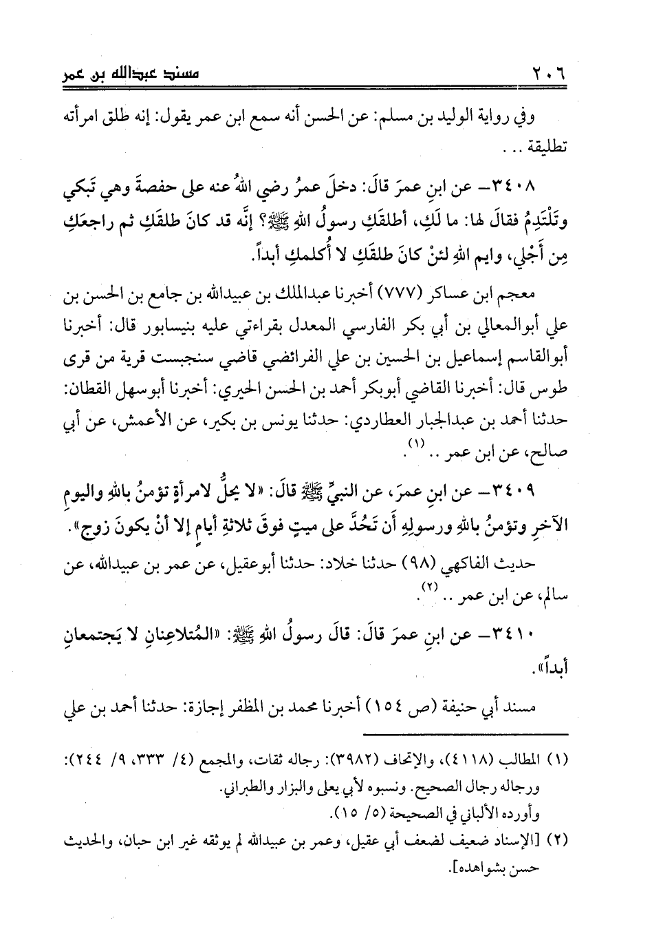 3410 - عن ابنِ عمرَ قالَ: قالَ رسولُ اللهِ صلى الله عليه وسلم: «المُتلاعِنانِ لا يَجتمعانِ أبداً».