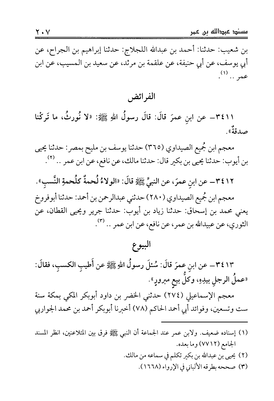 3411 - عن ابنِ عمرَ قالَ: قالَ رسولُ اللهِ صلى الله عليه وسلم: «لا نُورثُ، ما تَركْنا صدقةٌ».