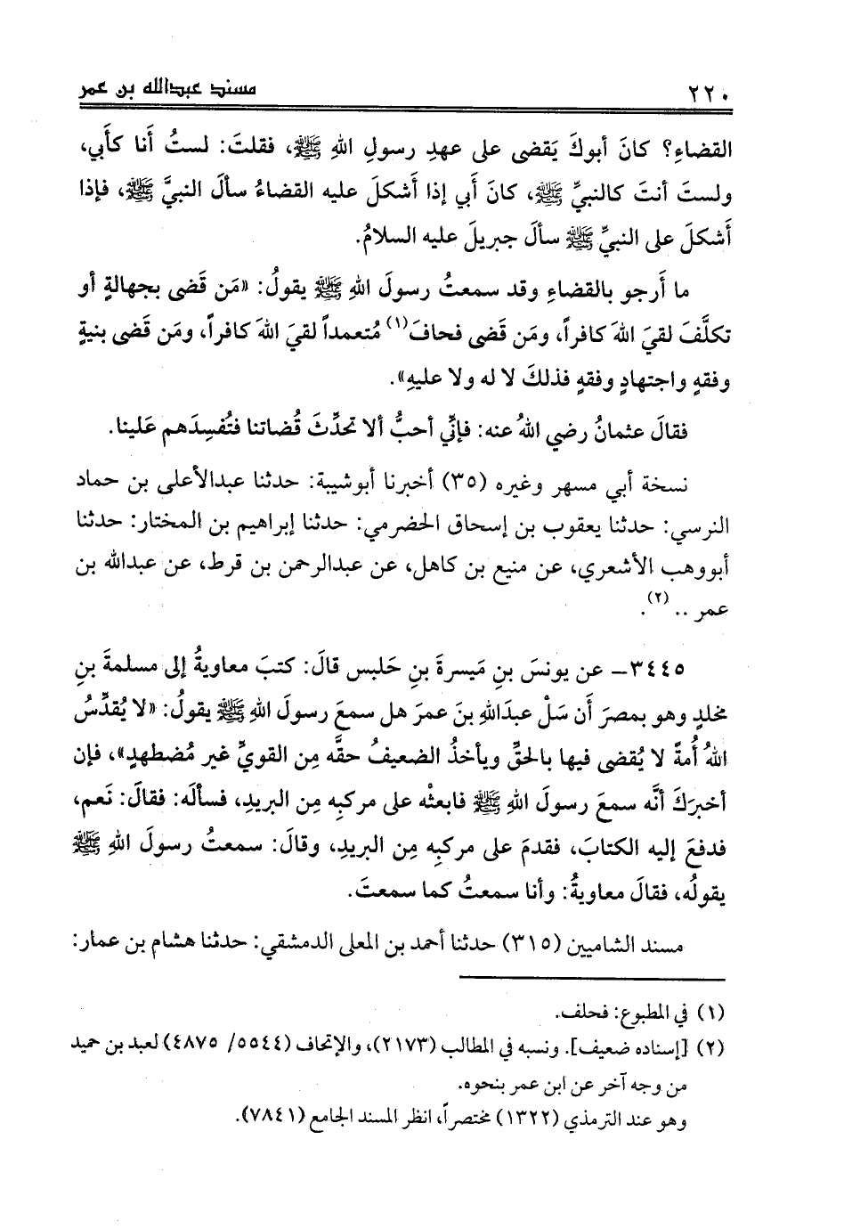 3445 - عن يونسَ بنِ مَيسرةَ بنِ حَلبس قالَ: كتبَ معاويةُ إلى مسلمةَ بنِ مخلدٍ وهو بمصرَ أَن سَلْ عبدَاللهِ بنَ عمرَ هل سمعَ رسولَ اللهِ صلى الله عليه وسلم يقولُ: «لا يُقدِّسُ اللهُ أُمةً لا يُقضى فيها بالحقِّ ويأخذُ الضعيفُ حقَّه مِن القويِّ غير مُضطهدٍ»، فإن أخبرَكَ أنَّه سمعَ رسولَ اللهِ صلى الله عليه وسلم فابعثْه على مركبِه مِن البريدِ، فسألَه: فقالَ: نَعم، فدفعَ إليه الكتابَ، فقدمَ على مركبِه مِن البريدِ، وقالَ: سمعتُ رسولَ اللهِ صلى الله عليه وسلم يقولُه، فقالَ معاويةُ: وأنا سمعتُ كما سمعتَ.