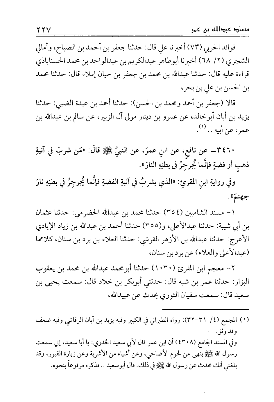 قالا (جعفر بن أحمد ومحمد بن الحسن): حدثنا أحمد بن عبدة الضبي: حدثنا يزيد بن أبان أبوخالد، عن عمرو بن دينار مولى آل الزبير، عن سالم بن عبدالله بن عمر، عن أبيه .. (¬1).