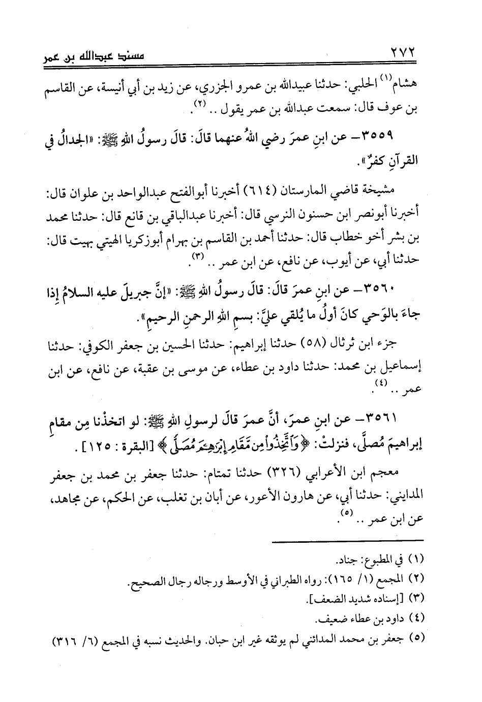 3559 - عن ابنِ عمرَ رضي اللهُ عنهما قالَ: قالَ رسولُ اللهِ صلى الله عليه وسلم: «الجدالُ في القرآنِ كفرٌ».