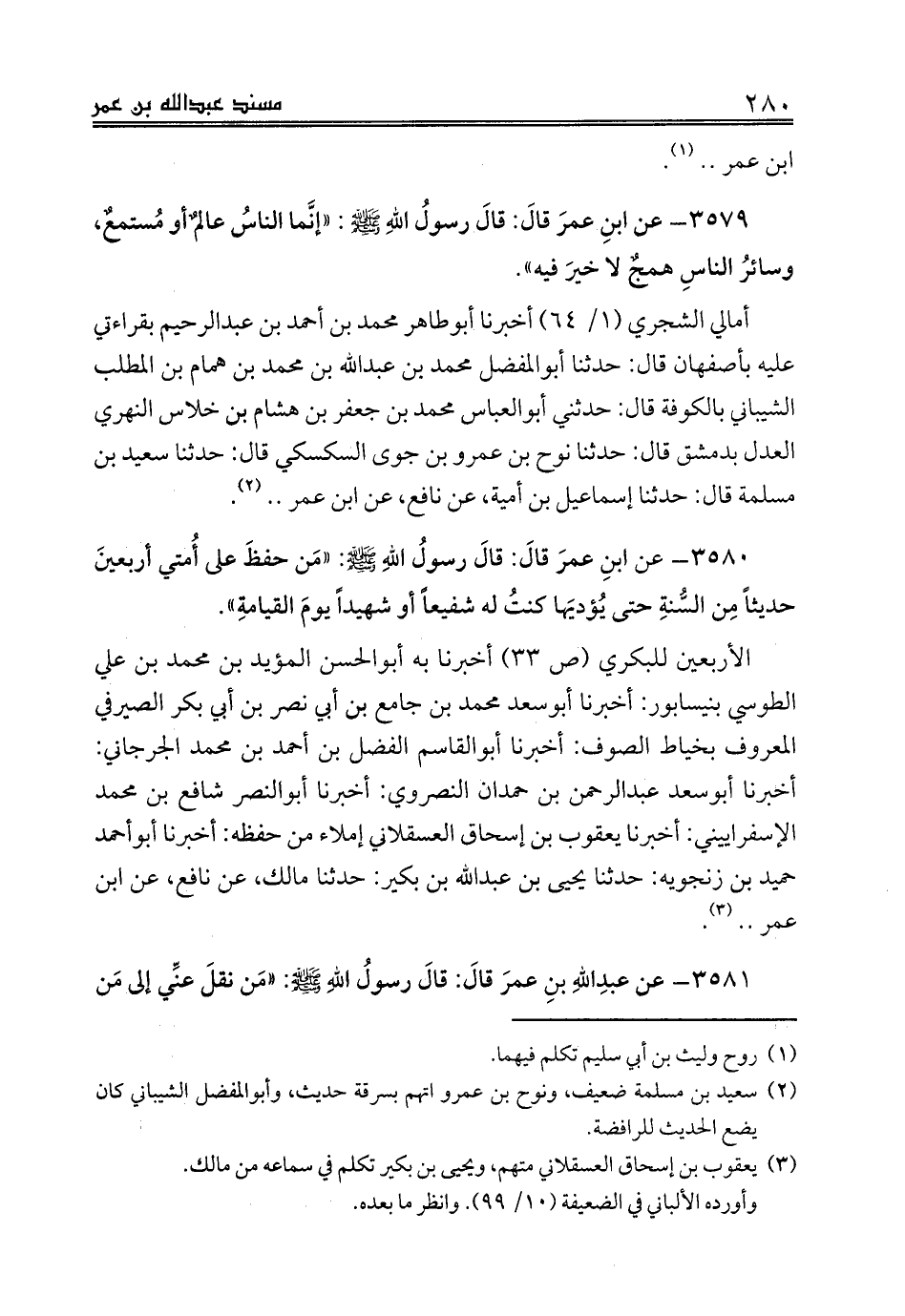3579 - عن ابنِ عمرَ قالَ: قالَ رسولُ اللهِ صلى الله عليه وسلم: «إنَّما الناسُ عالمٌ أو مُستمعٌ، وسائرُ الناسِ همجٌ لا خيرَ فيه».
