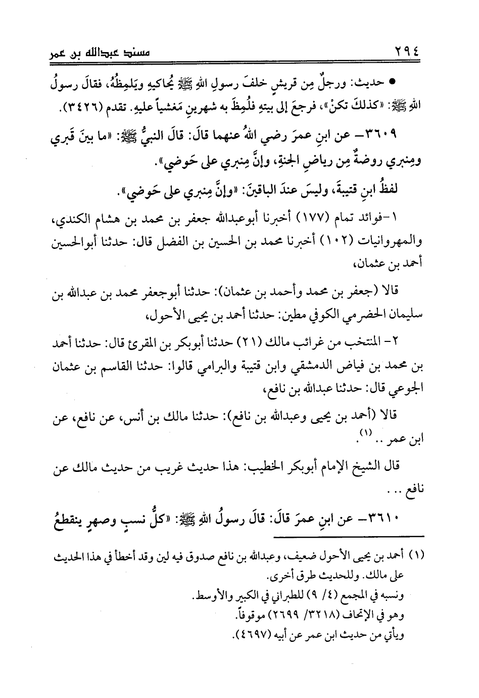 3610 - عن ابنِ عمرَ قالَ: قالَ رسولُ اللهِ صلى الله عليه وسلم: «كلُّ نسبٍ وصهرٍ ينقطعُ