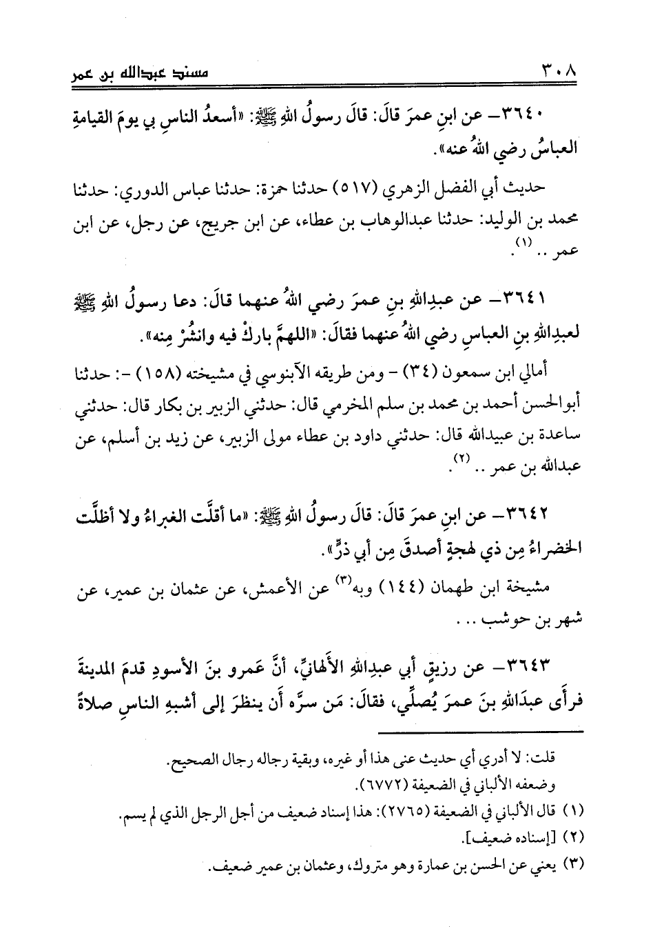 3640 - عن ابنِ عمرَ قالَ: قالَ رسولُ اللهِ صلى الله عليه وسلم: «أسعدُ الناسِ بي يومَ القيامةِ العباسُ رضي اللهُ عنه».